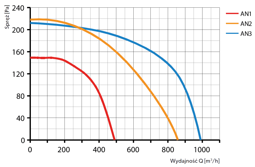 | Wydajność maksymalna: | 400 [m3/h] | 600 [m3/h] | 800 [m3/h] |
