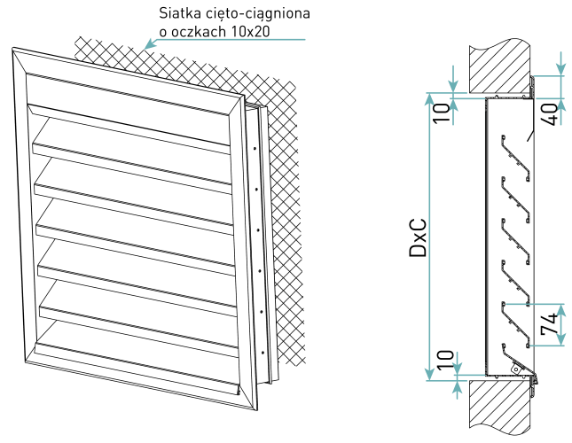 CWP mogą być instalowane w przegrodach budowlanych lub na zakończeniach przewodów wentylacyjnych. W CWP z nieruchomymi żaluzjami jest standardowo montowana siatka stanowiąca zabezpieczenie przed zanieczyszczeniami stałymi (liście) i ptakami.
