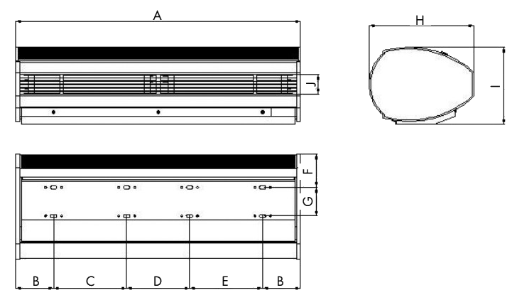 Wysokiej jakości materiały, z których wykonane jest urządzenie oraz nowoczesny design zadowolą najbardziej wymagających klientów. Obudowa kurtyny wykonana jest z anodowanego aluminium. Aluminiowa kratka wylotowa z pięcioma lamelami gwarantuje równomierną dystrybucję strumienia powietrza oraz zapewnia skuteczność ochrony otworu drzwiowego. Sterownie urządzenia może odbywać się poprzez pilota zdalnego sterownia lub panel sterujący na obudowie.