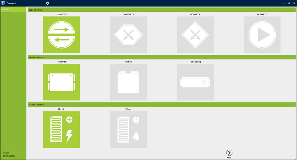 Najnowsze narzędzie dla projektantów i firm instalacyjnych z branży HVAC – program doboru Domekt (dostępny w polskiej wersji językowej) – w prosty i intuicyjny sposób pozwala na dobór przez użytkownika optymalnej centrali wentylacyjnej z serii Komfovent DOMEKT. Na podstawie podstawowych parametrów centrali, jak: wydajność, spręż, rodzaj odzysku ciepła, itp., program podpowiada urządzenia spełniające dane wymagania. Dodatkowo istnieje możliwość sprecyzowania pozostałych parametrów technicznych urządzenia, takich jak np.: gęstość wymiennika, układ króćców, strona wykonania, rodzaj nagrzewnicy, parametry czynnika, itp.