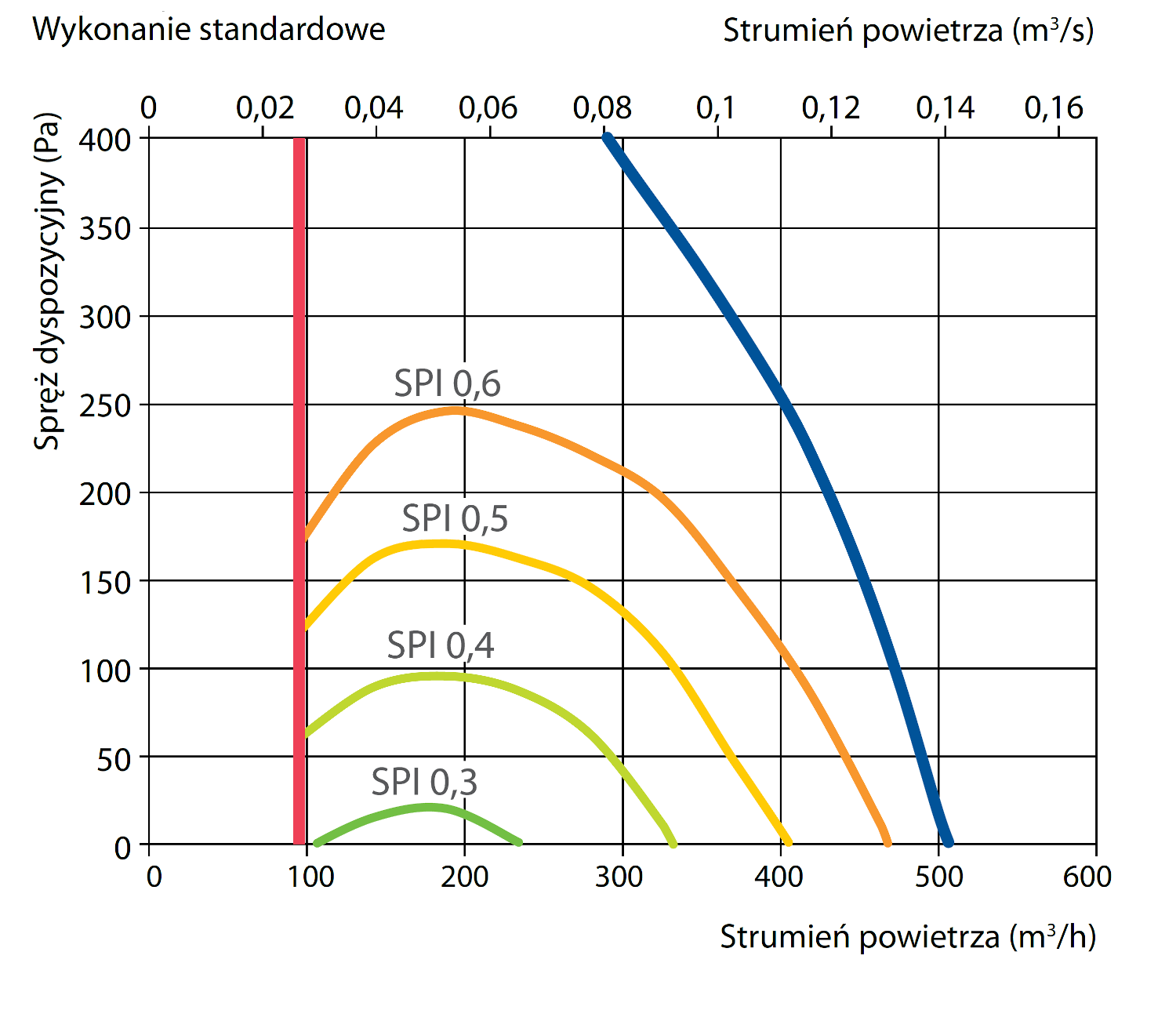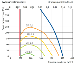 Pobór mocy przez napęd wentylatora przy przepływie maksymalnym W 170