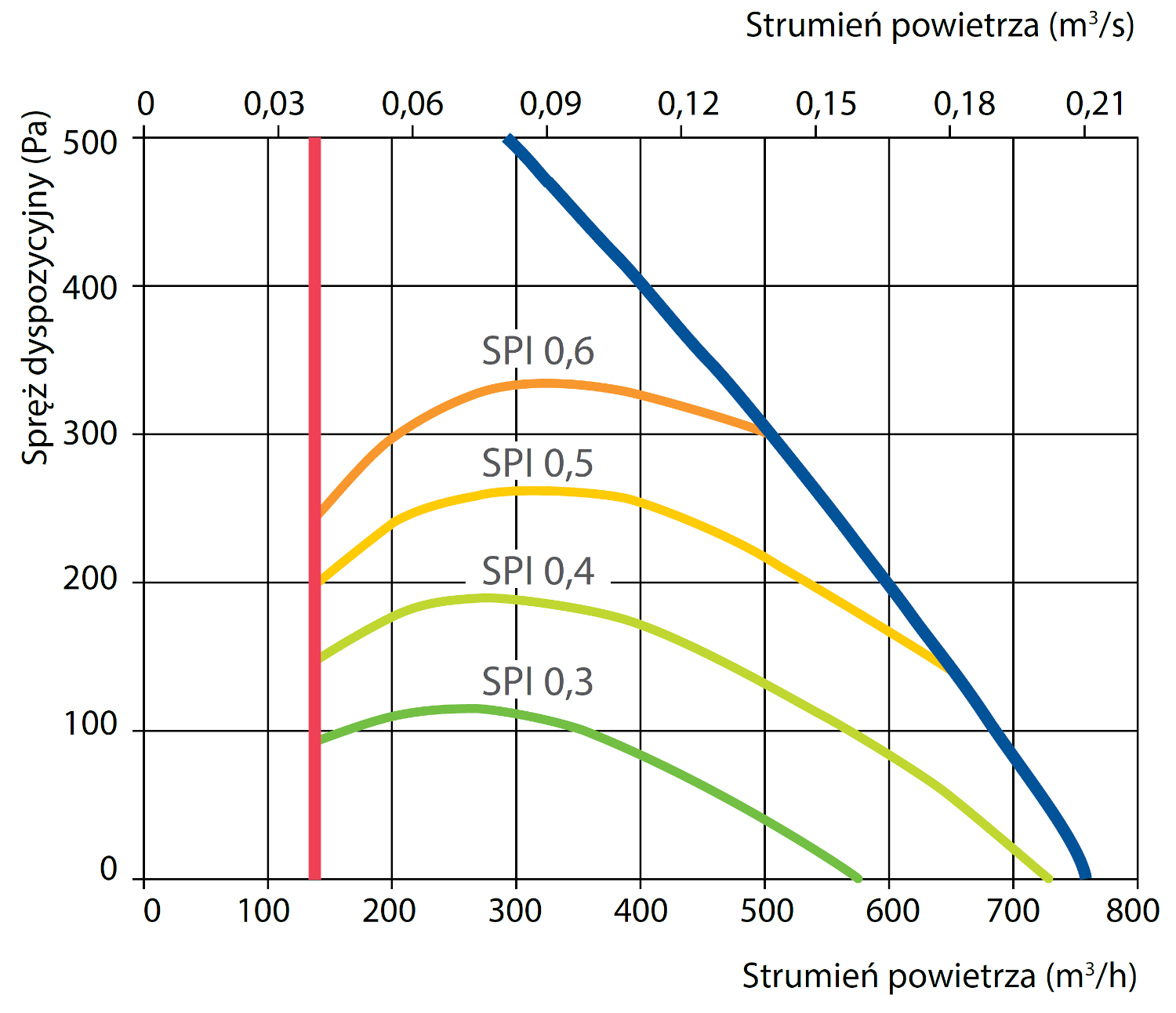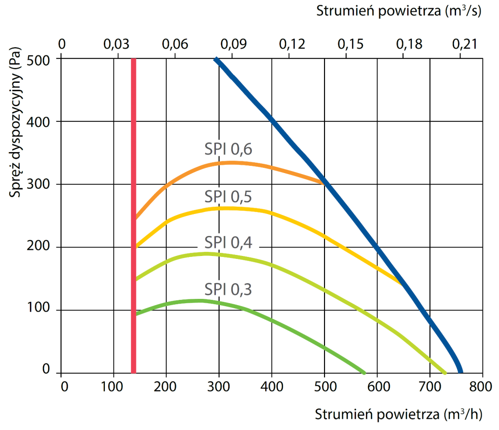 | Znamionowy przepływ powietrza | m3/s | 0,14 | |