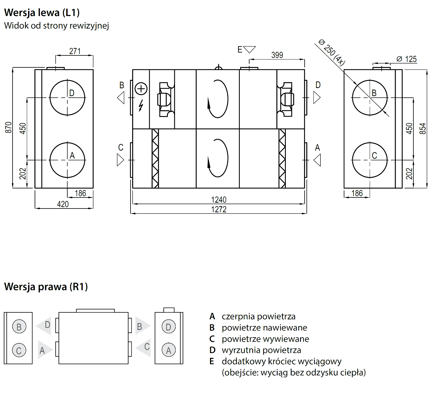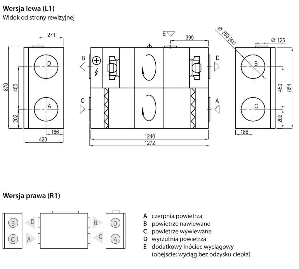 | Odzysk chłodu | W okresie letnim jednostka odzyskuje chłód z powietrza wywiewanego z klimatyzowanych pomieszczeń |