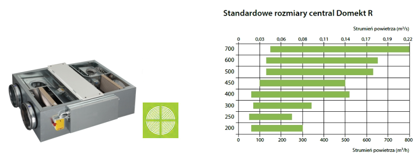 | Free cooling | Gdy temperatura w pomieszczeniu jest wyższa od nastawionej, a temperatura zewnętrzna jest niższa, wówczas wymiennik ciepła przestaje pracować, a pomieszczenia schładzane są powietrzem zewnętrznym |