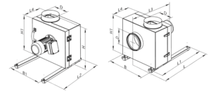 Obudowa wentylatora wykonana jest z galwanizowanej stali i materiału izolującego termicznie i akustycznie w postaci warstwy wełny mineralnej o grubości 50 mm. Wentylator wyposażony jest w pierścienie antywibracyjne. Króćce przyłączeniowe posiadają gumowe uszczelki. Dostęp do bloku silnika umożliwia ścianka rewizyjna z wygodnym uchwytem.