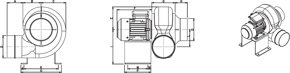 Wentylatory zostały wyposażone w napęd bezpośredni realizowany przez asynchroniczne silniki indukcyjne zgodne IEC-34. IP55. Klasa izolacji F. Wykonanie standardowe: silniki trójfazowe jednobiegowe o napięciu zasilania 3~230/400V 50Hz (Δ/Y), bez wbudowanych czujników temperatury uzwojeń typu PTC/TK, których prędkość obrotowa nie może być regulowana. Wykonanie z możliwością regulacji obrotów: silniki trójfazowe jednobiegowe o napięciu zasilania 3~230/400V 50Hz (Δ/Y), z wbudowanymi czujnikami temperatury uzwojeń typu PTC/TK, których prędkość obrotowa może być regulowana przemiennikiem częstotliwości w zakresie 25-50Hz.