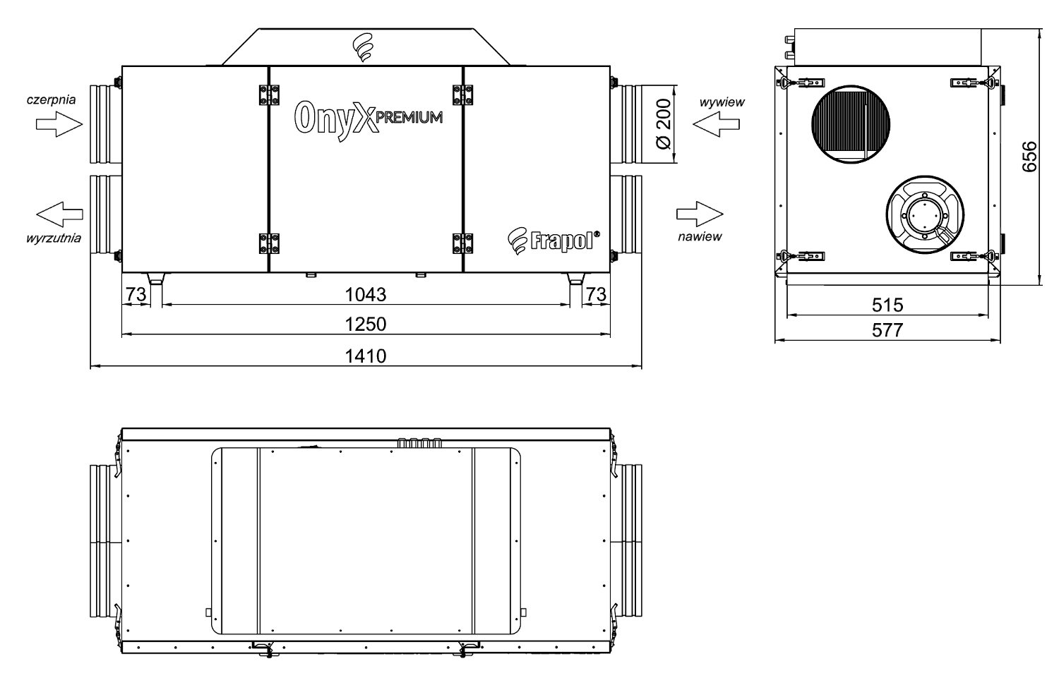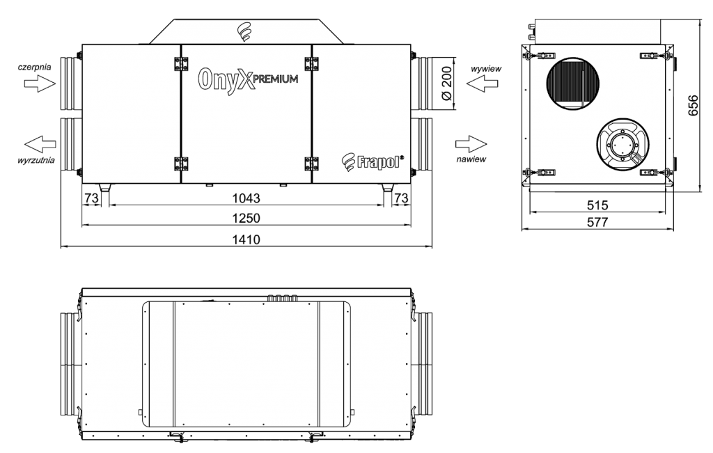 | Wymiary przyłączy wentylacyjnych (średnica) | mm | 577 x 656 x 1410 |