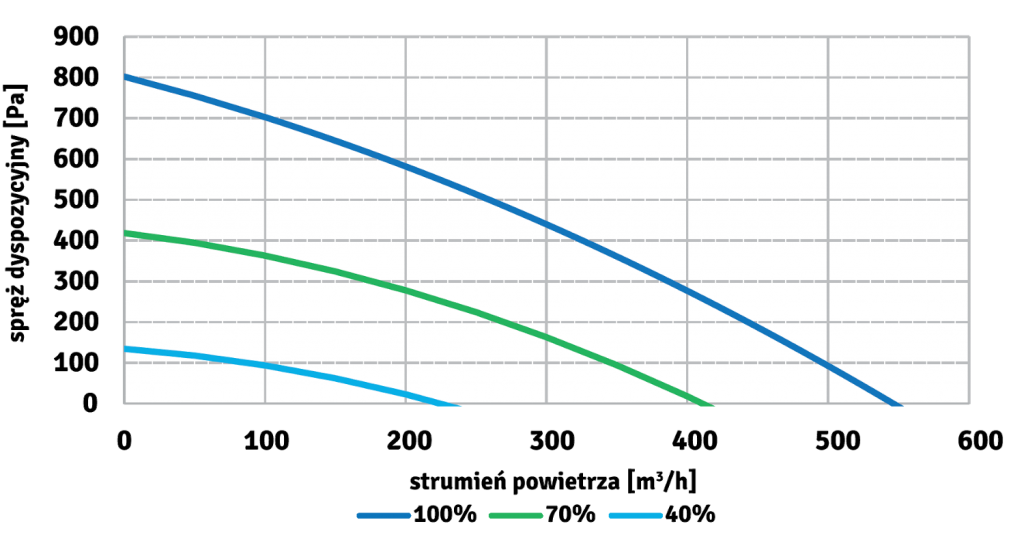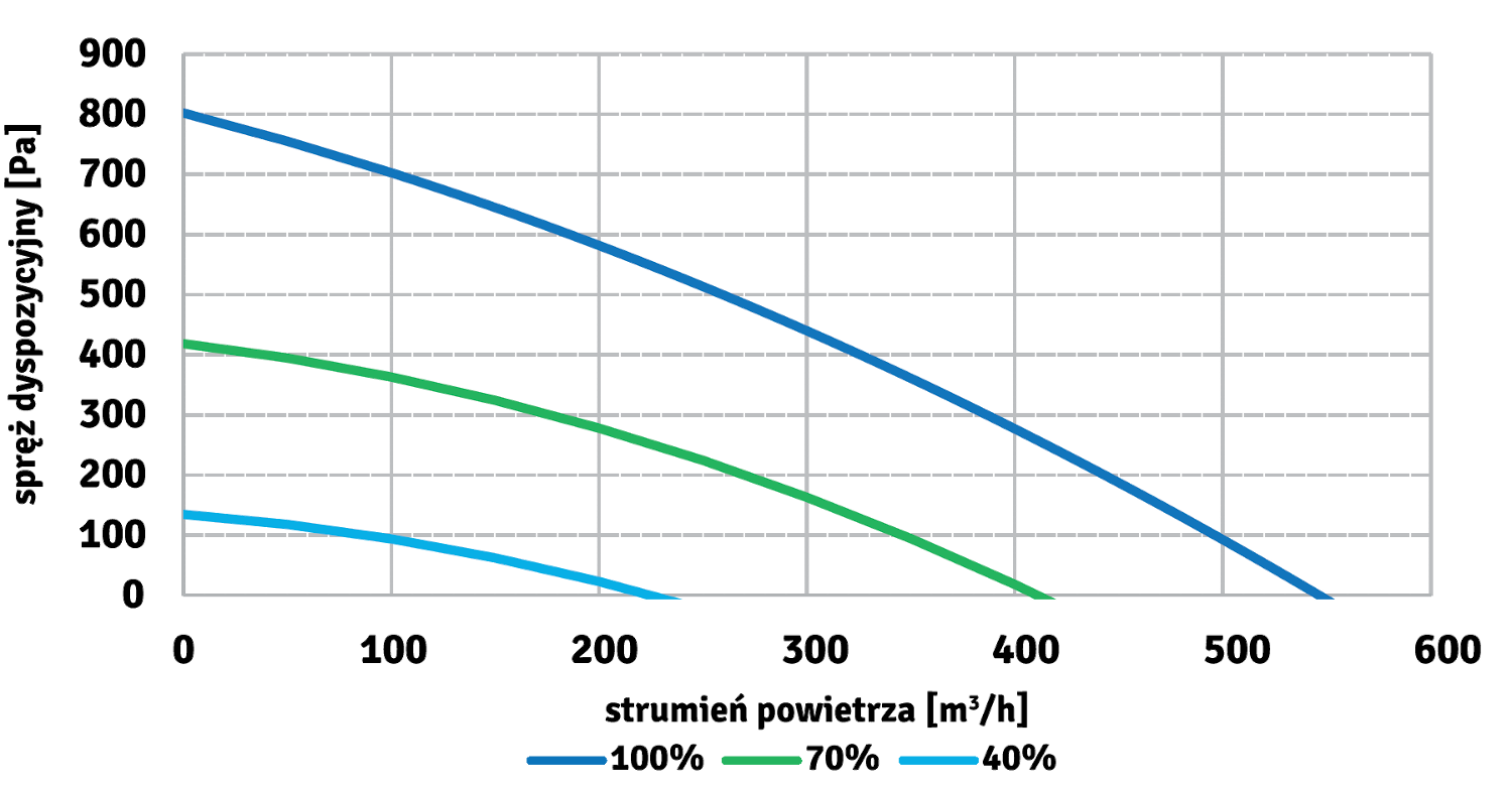 | Maksymalny strumień powietrza (100 Pa) | m3/h | 496 |