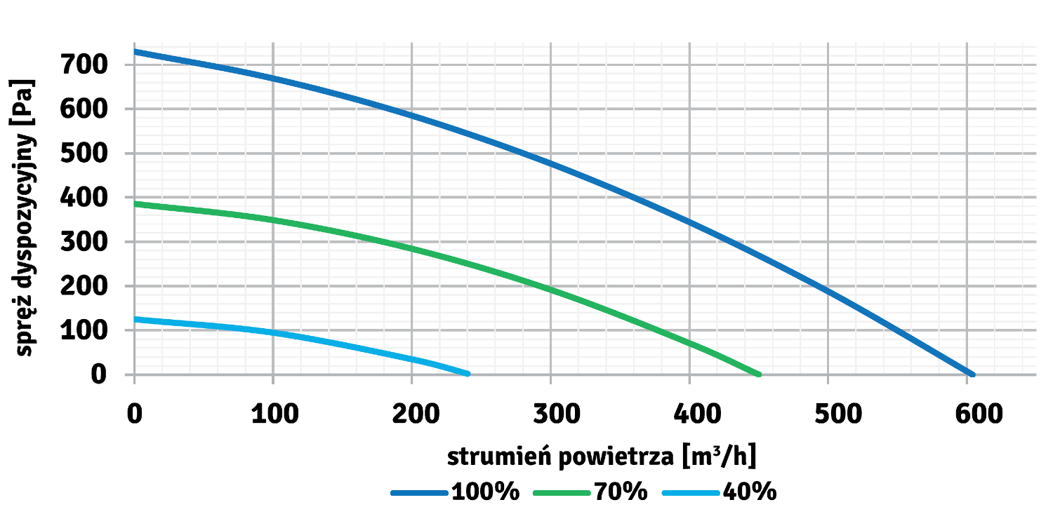 | Maksymalny strumień powietrza (100 Pa) | m3/h | 576 |
