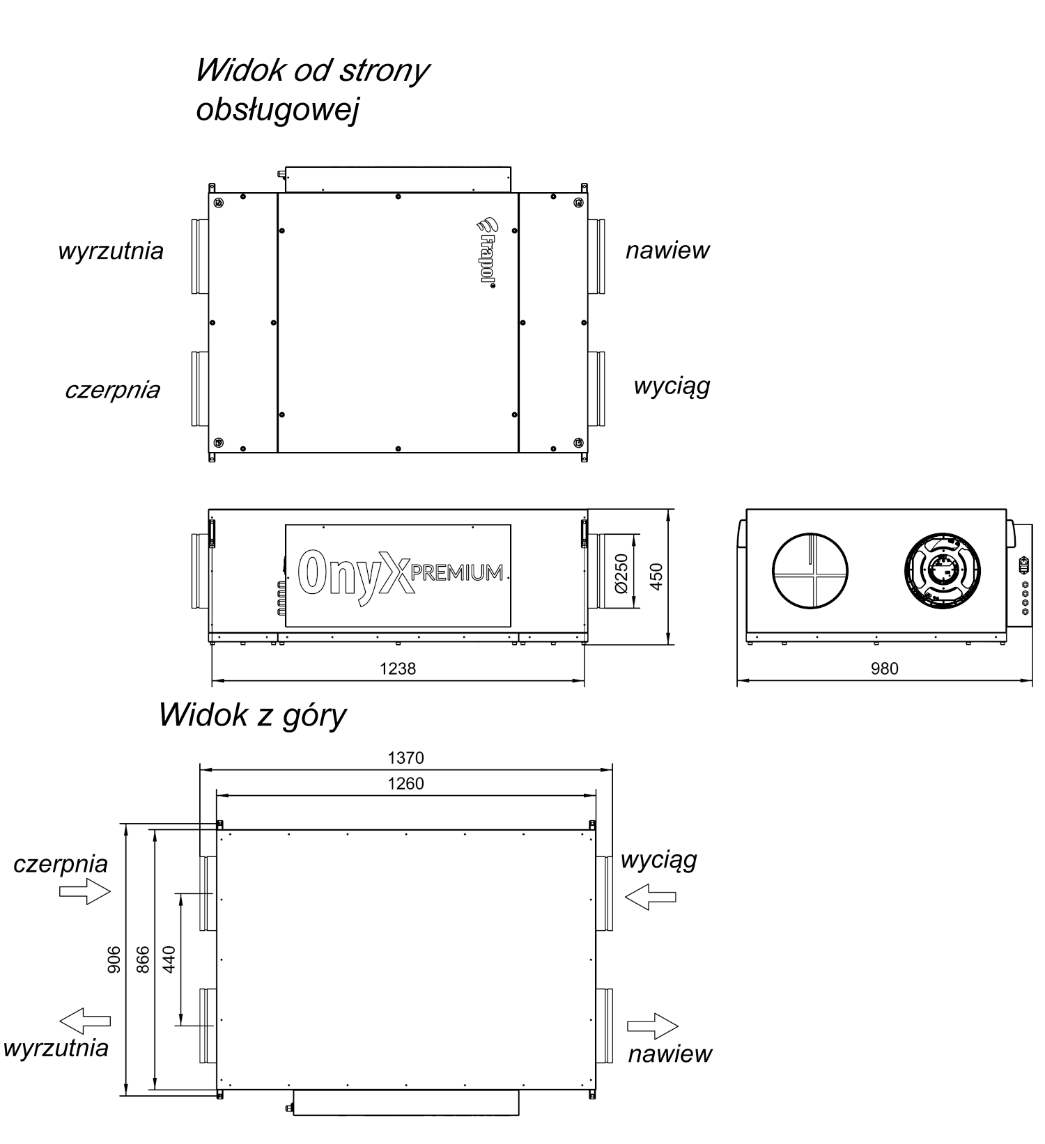 | Wymiary przyłączy wentylacyjnych (średnica) | mm | 250 |