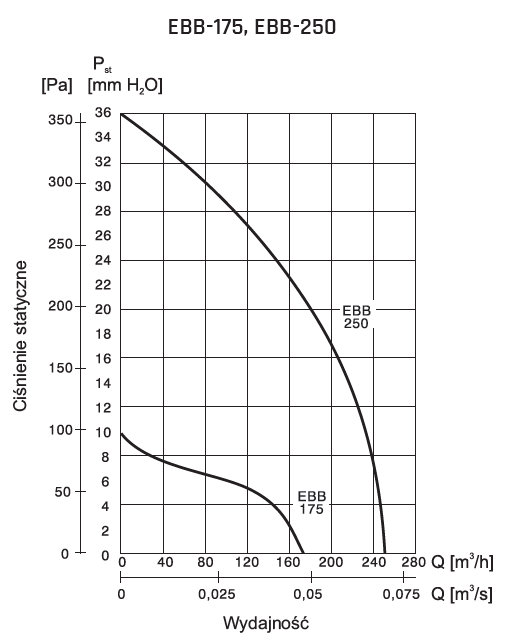 Wentylatory promieniowe EBB mają obudowę wykonaną z tworzywa sztucznego, posiadają zabezpieczenie przed porażeniem prądem w klasie II. Wentylatory EBB przystosowane są do pracy w dowolnej pozycji.