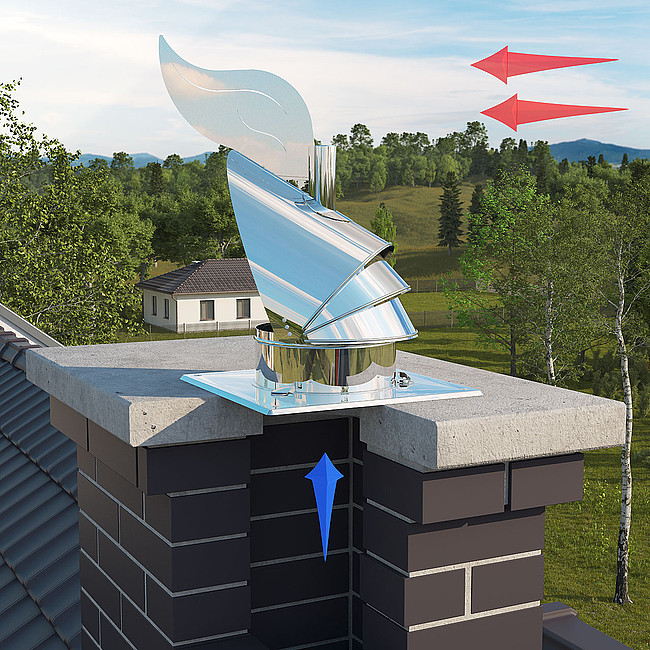 Samonastawna nasada kominowa ROTOWENT DRAGON jest urządzeniem dynamicznie wykorzystującym siłę wiatru do wspomagania ciągu kominowego. Niezależnie od kierunku, siły i rodzaju wiatru, wylot kołpaka nasady ustawia się po zawietrznej stronie wiejącego wiatru. Montuje się ją na wylotach kominowych o działaniu grawitacyjnym: spalinowych i dymowych. Dzięki opatentowanemu sposobowi łożyskowania, umieszczonemu poza obszarem wysokiej temperatury gazów spalinowych, polecana jest na przewody odprowadzające spaliny z kominków i pieców na paliwa stałe.