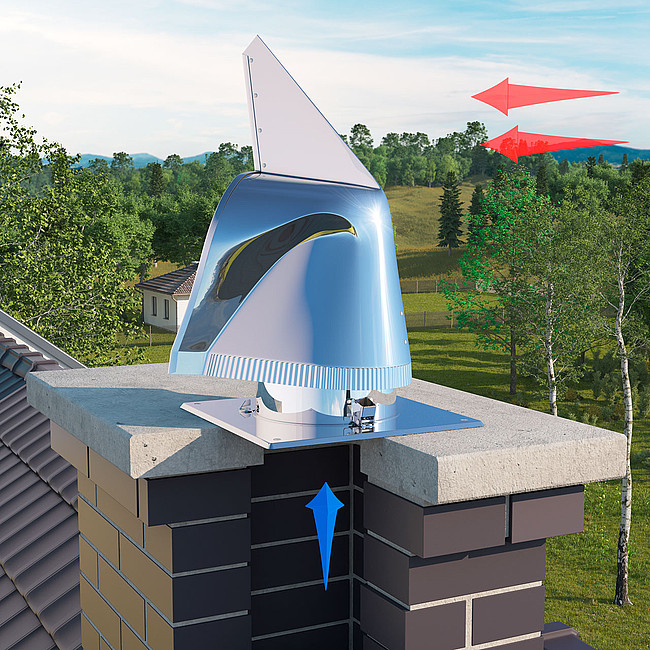 Samonastawna nasada kominowa ROTOWENT jest urządzeniem dynamicznie wykorzystującym siłę wiatru do wspomagania ciągu kominowego. Niezależnie od kierunku, siły i rodzaju wiatru, wylot kołpaka nasady ustawia się po zawietrznej stronie wiejącego wiatru. Montuje się ją na wylotach kominowych spalinowych i dymowych.