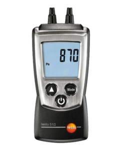 Manometr elektroniczny testo 510 pozwala na przeprowadzanie pomiarów różnicy ciśnień w systemach wentylacyjnych lub przepływu powietrza w kanałach wentylacyjnych przy pomocy rurki Pitota.