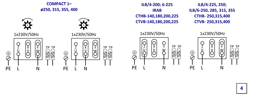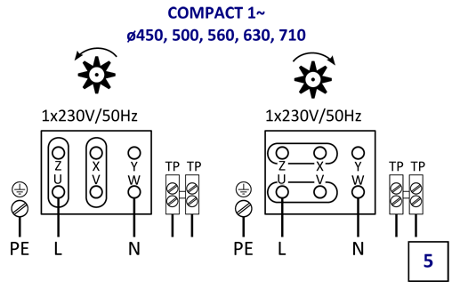 Dla modeli od 140 do 400 możliwość regulacji obrotów przez zmianę napięcia, dla pozostałych modeli regulacja przetwornicą częstotliwości. Przy regulacji prędkości obrotowej, instalacja elektryczna musi być wyposażona w zabezpieczenia, które zapewnią pracę wentylatora z maksymalną prędkością w czasie pożaru.