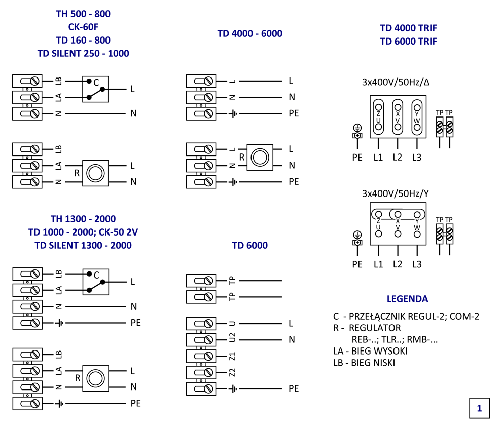 Wentylatory TH wyposażone są w jednofazowe silniki indukcyjne o stopniu ochrony IP44 i klasie izolacji F.