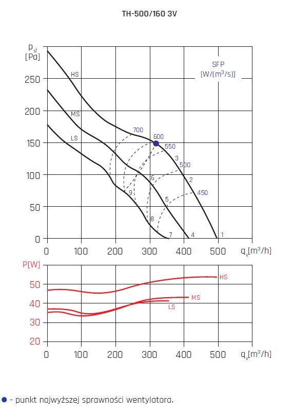 Wentylator dachowy wywiewny lub nawiewny przeznaczony do wentylacji pomieszczeń o niskim stopniu zanieczyszczenia powietrza. Wirnik z tworzywa sztucznego (TH 500, 800) lub z blachy stalowej (TH 1300, 2000). Czasza modeli TH 500 i 800 jest wykonana z blachy stalowej, a TH 1300 i 2000 z aluminium, płyta podstawy wykonana z blachy stalowej. Metalowe elementy chronione są przed korozją farbą epoksydowo-poliestrową.