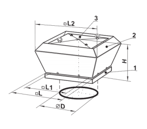 Wentylator montowany jest bezpośrednio na powierzchni dachu lub na podstawie dachowej izolowanej lub tłumiącej, ustawionej bezpośrednio nad kanałem wentylacyjnym. Do trwałego przymocowania wentylatora do podłoża lub podstawy służy kwadratowa płyta montażowa. Do połączenia z kanałem wentylacyjnym służą następujące akcesoria: zawór zwrotny KKV, łącznik kanałów elastycznych GVK oraz kołnierz FVK. Przyłączenie elektryczne i instalacja muszą być wykonane zgodnie z instrukcją i schematem elektrycznym znajdującym się w DTR.