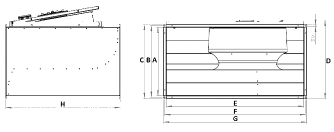 Promieniowy wentylator kanałowy przeznaczony do instalacji kołnierzowej (20mm) w ciągu prostokątnych kanałów wentylacyjnych. Obudowa wykonana z galwanizowanej blachy stalowej, z odchylną pokrywą serwisową, na której zawieszono moduł silnika i wirnika. Na obudowie przymocowano puszkę przyłączeniową.