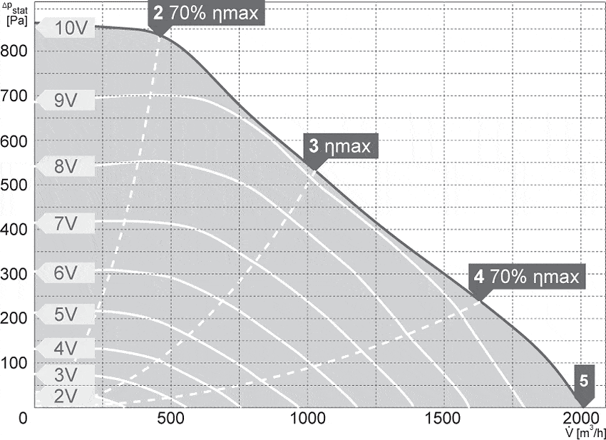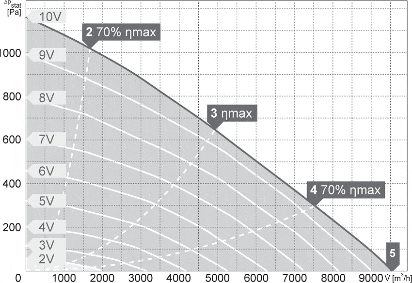 Napęd stanowi nowoczesny silnik komutowany elektronicznie EC, zasilanie jedno lub trójfazowe (230V, 400V 50 Hz) ze zintegrowanym zabezpieczeniem termicznym. Stopień ochrony IP54, klasa izolacji F (B dla 60/35/3050EC).