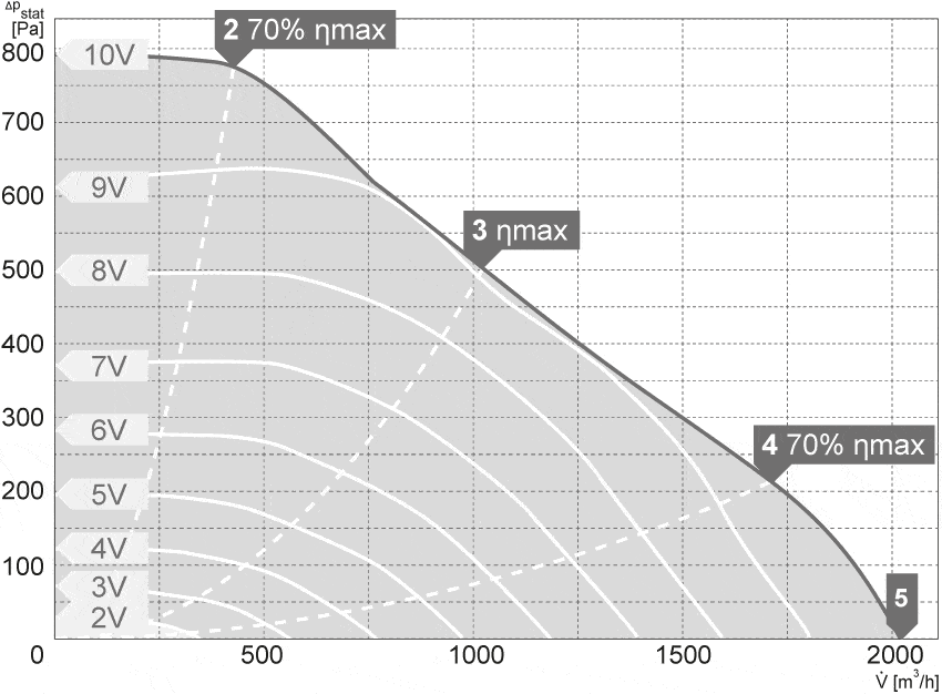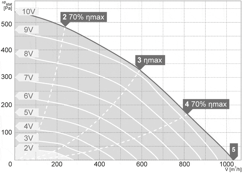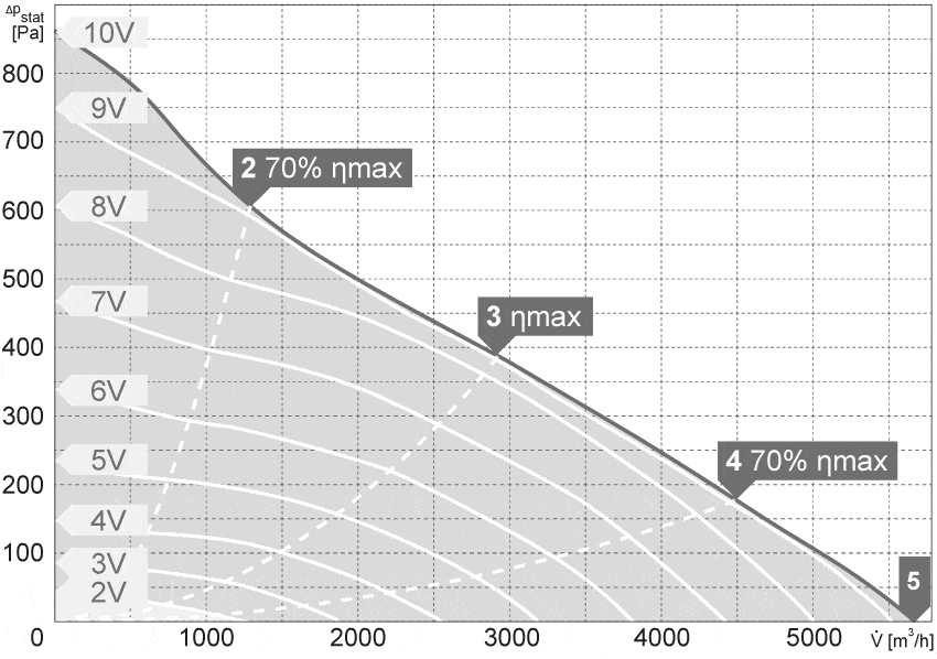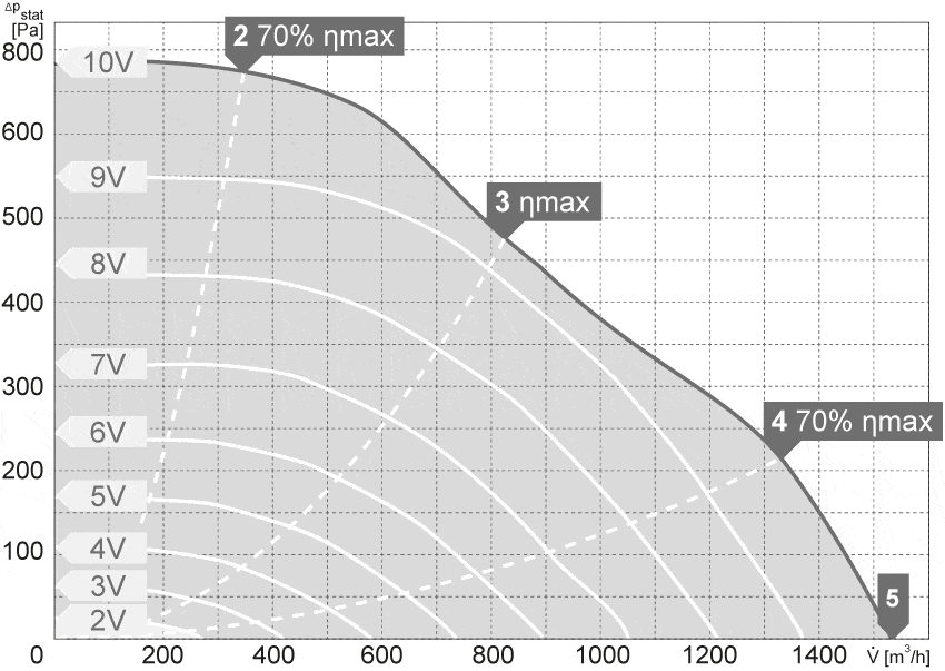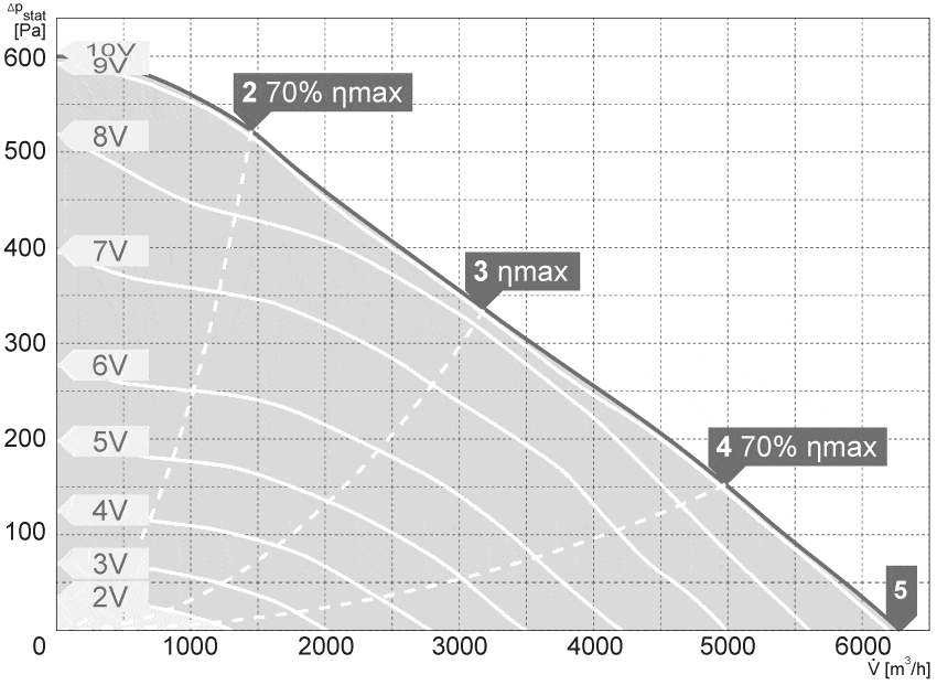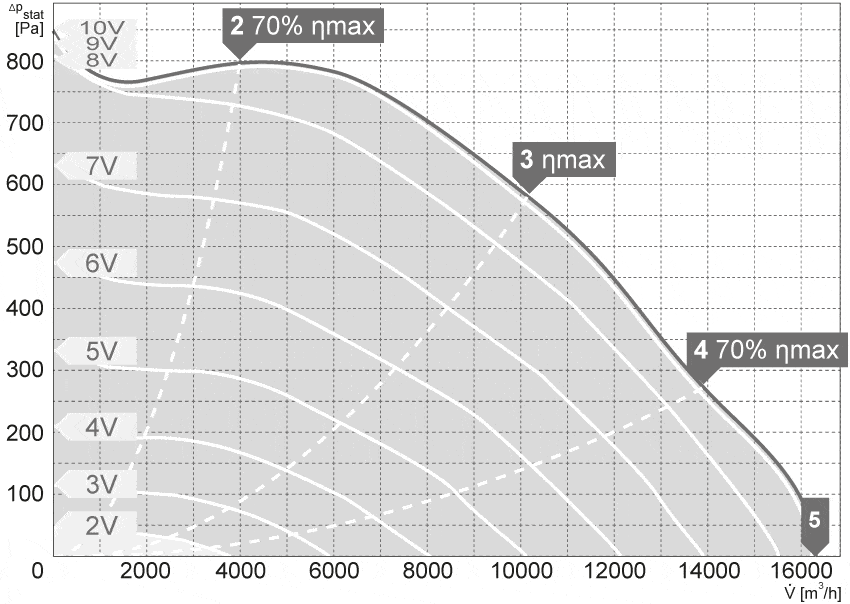 Napęd stanowi nowoczesny silnik EC komutowany elektronicznie, zasilanie jedno lub trójfazowe (1~230V, 3~400V 50 Hz) ze zintegrowanym zabezpieczeniem termicznym. Stopień ochrony IP54, klasa izolacji F.