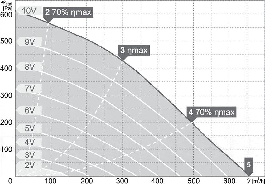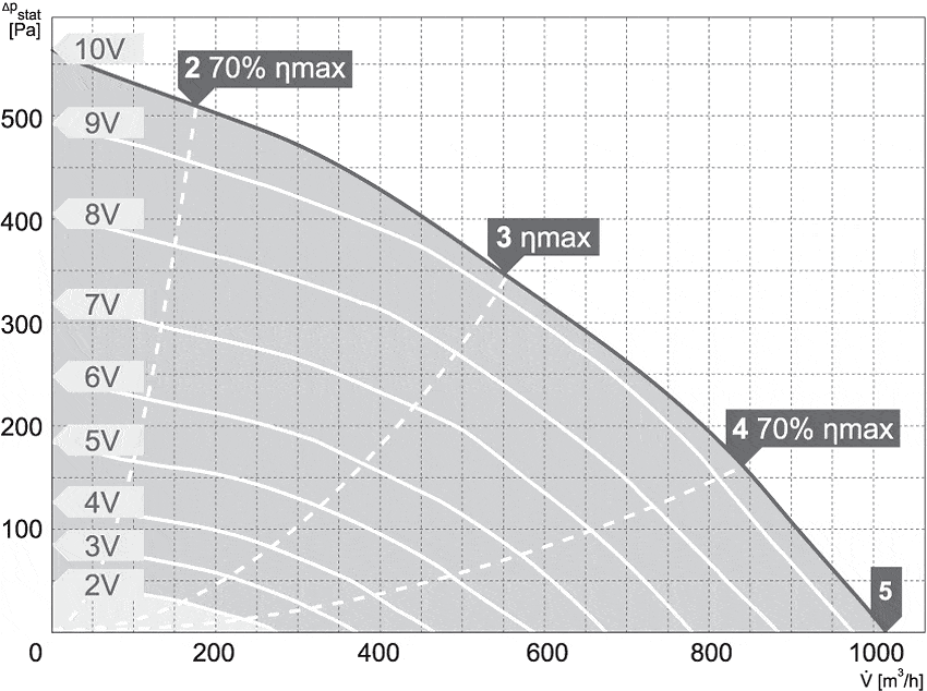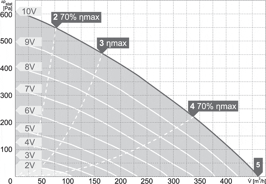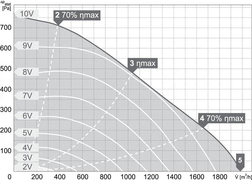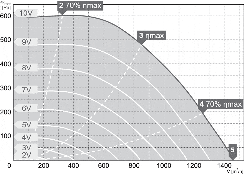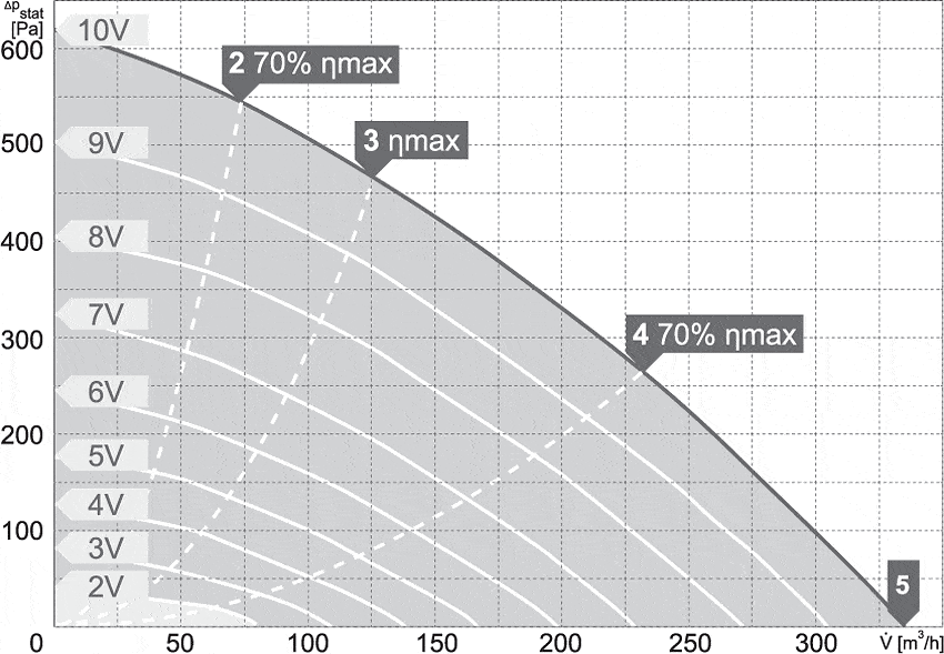 Zmiana prędkości obrotowej odbywa się poprzez podłączenie opcjonalnego potencjometru lub innego urządzenia (sterownika) wykorzystującego sygnał analogowy 0-10V. Stopień ochorny silnika: IP54 (modele 100/300 – 250/1000), IP33 (modele 250/1200 – 315/2000), puszki przyłączeniowej IP44, całego urządzenia IPX4. Klasa izolacji F.