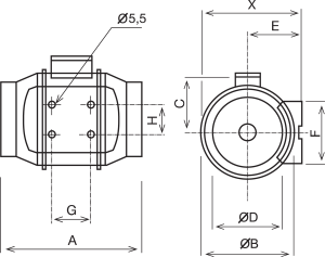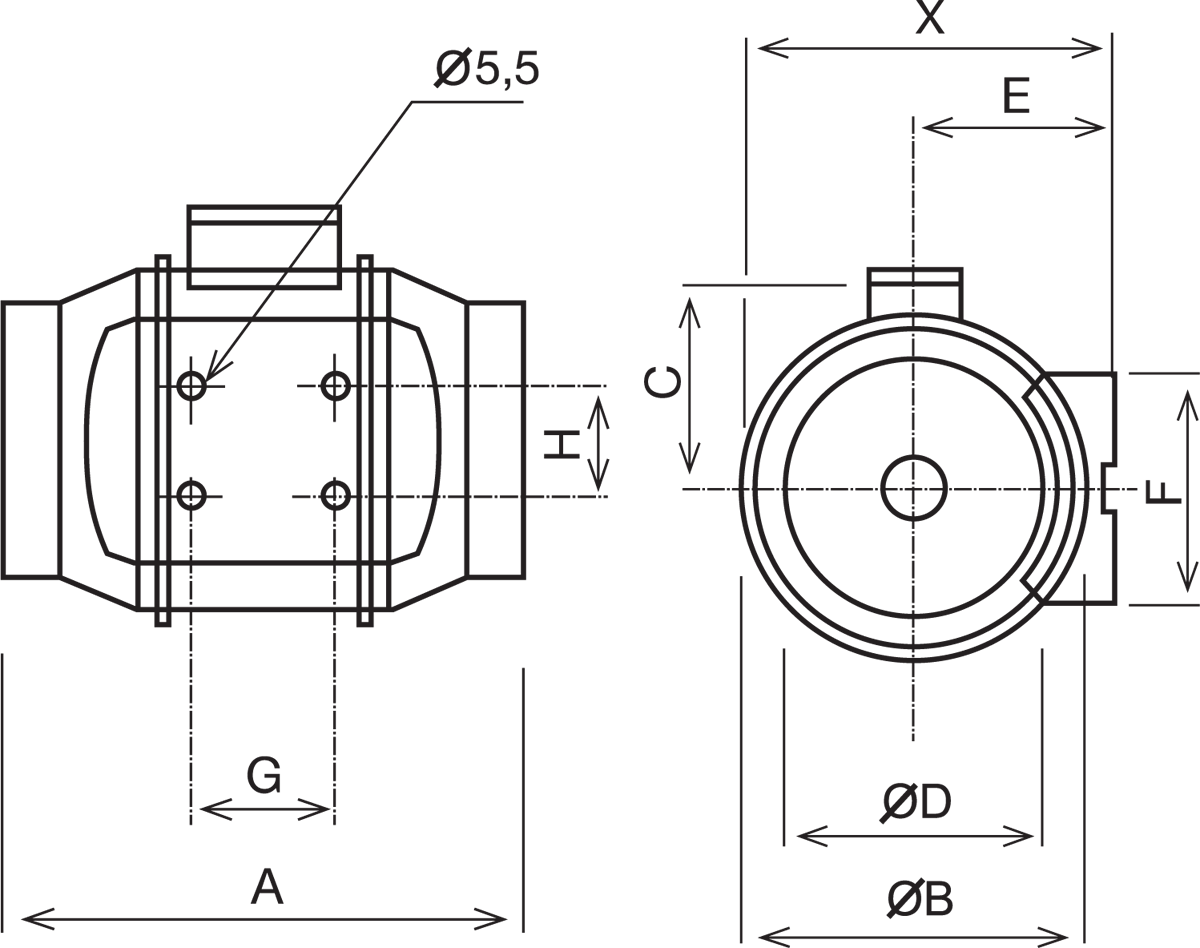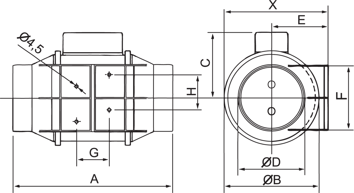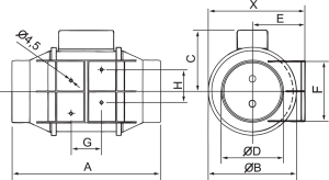 | Typ | X | A | ØB | C | ØD | E | F | G | H |