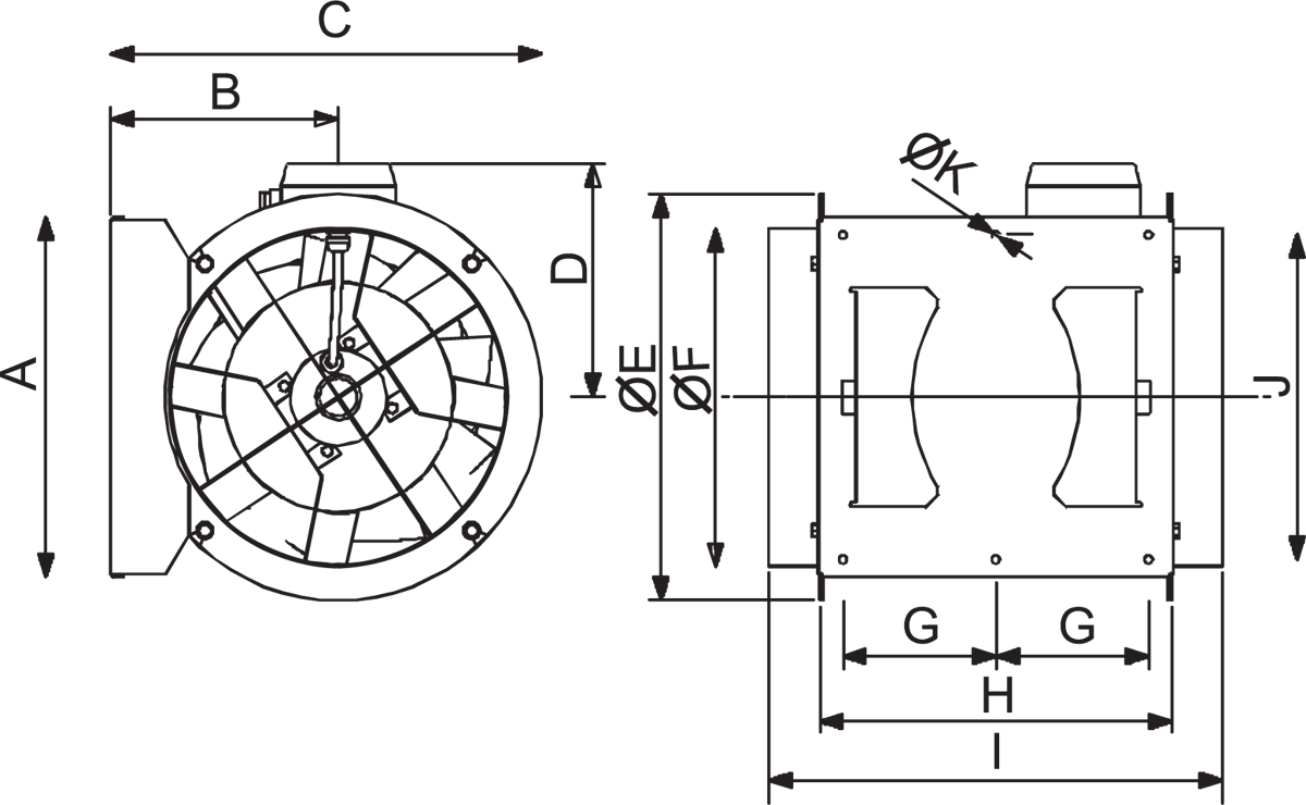 | Typ | A | B | C | D | ØE | ØF | G | H | I | J | ØK |