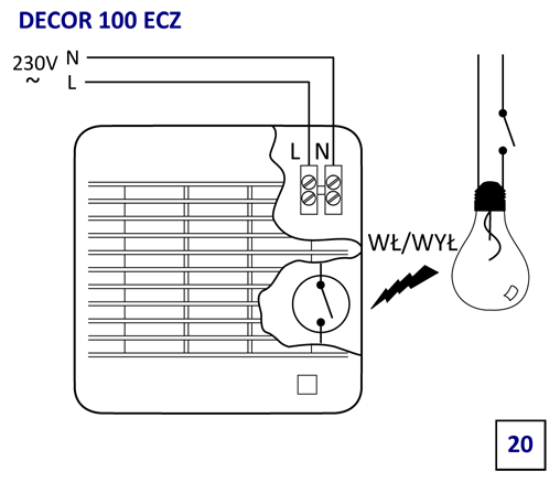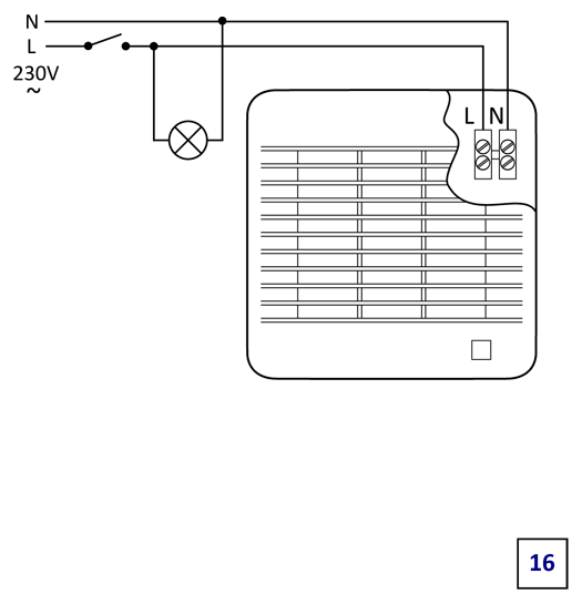 Gdy wentylator jest wyłączony, klapa zwrotna zapobiega dostawaniu się do pomieszczenia powietrza zewnętrznego i wydostawaniu się powietrza ogrzanego. Gdy wentylator działa, klapa zwrotna otwiera się, aby umożliwić wydajne usunięcie niechcianego powietrza.
