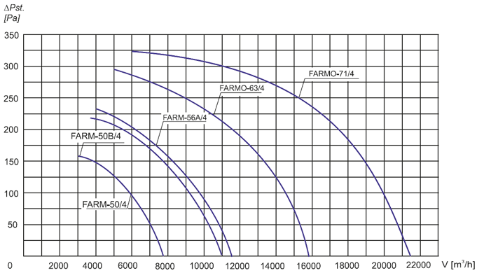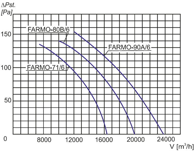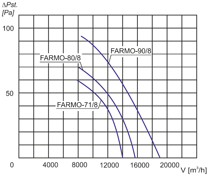 Wentylatory do mocy 1.5kW występują z zasilaniem 230V lub 400V. Większe modele występują z zasilaniem 400V. Wentylatory FARM(O) są przystosowane do regulacji obrotów: