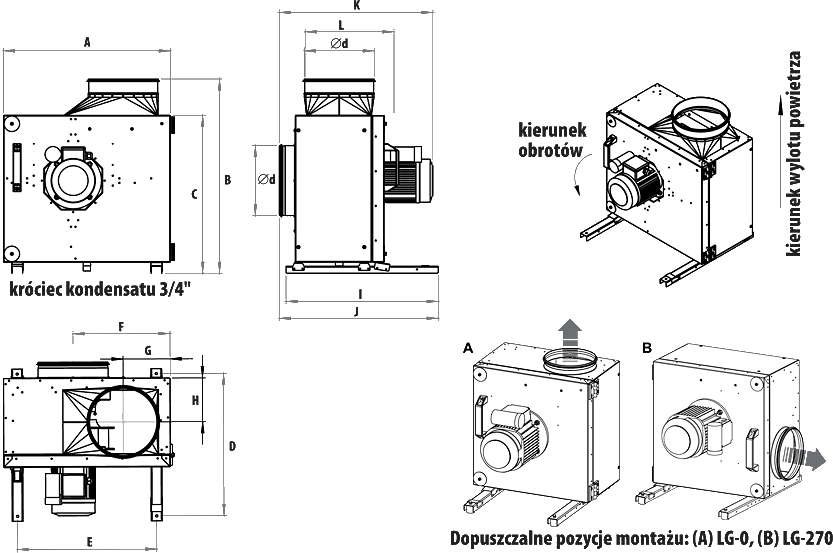 Trójfazowy (400V, 50Hz, IP55, klasa izolacji F) asynchroniczny silnik elektryczny zlokalizowany całkowicie poza strumieniem usuwanego powietrza.