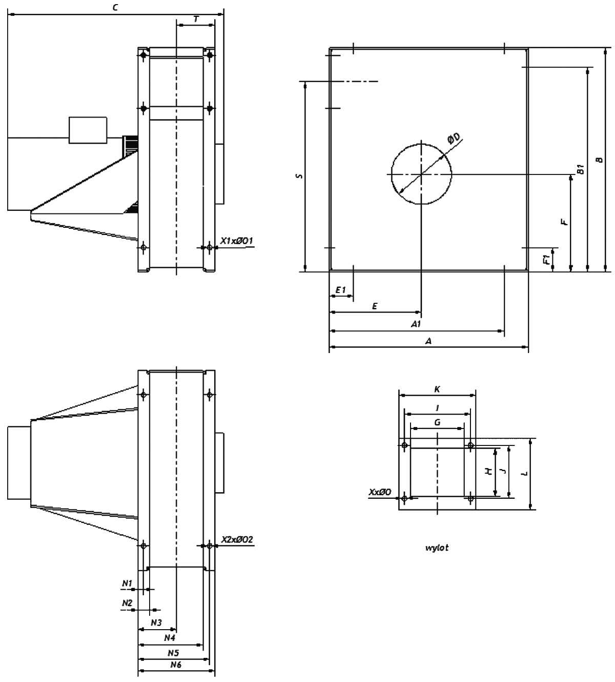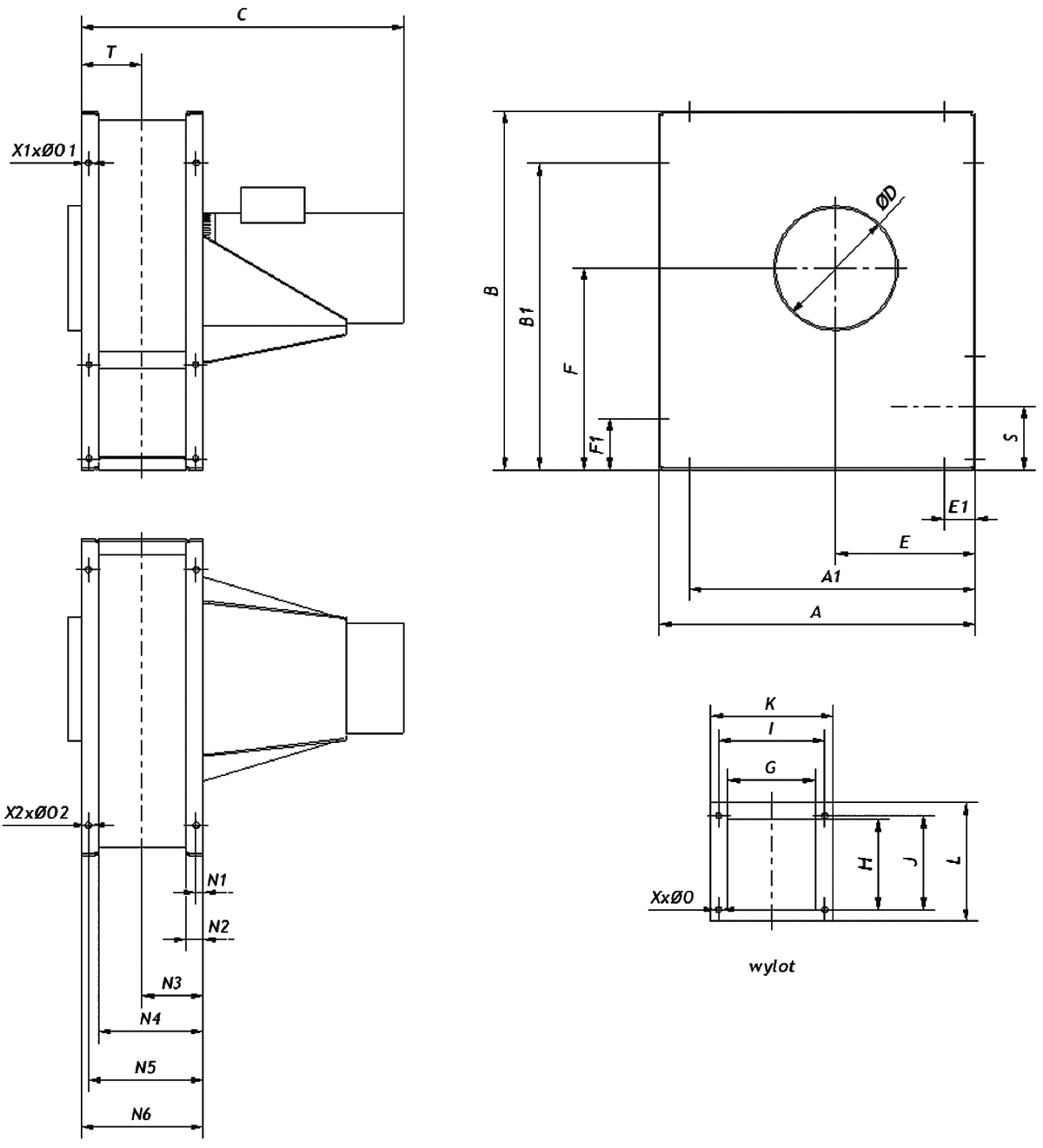 | Typ | X | X1 | X2 | ØO | ØO1 | ØO2 | T |