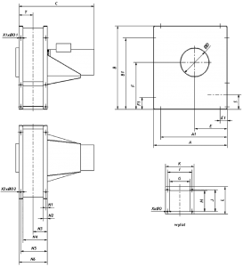 | Typ | A | A1 | B | B1 | C | ØD | E | E1 | F |