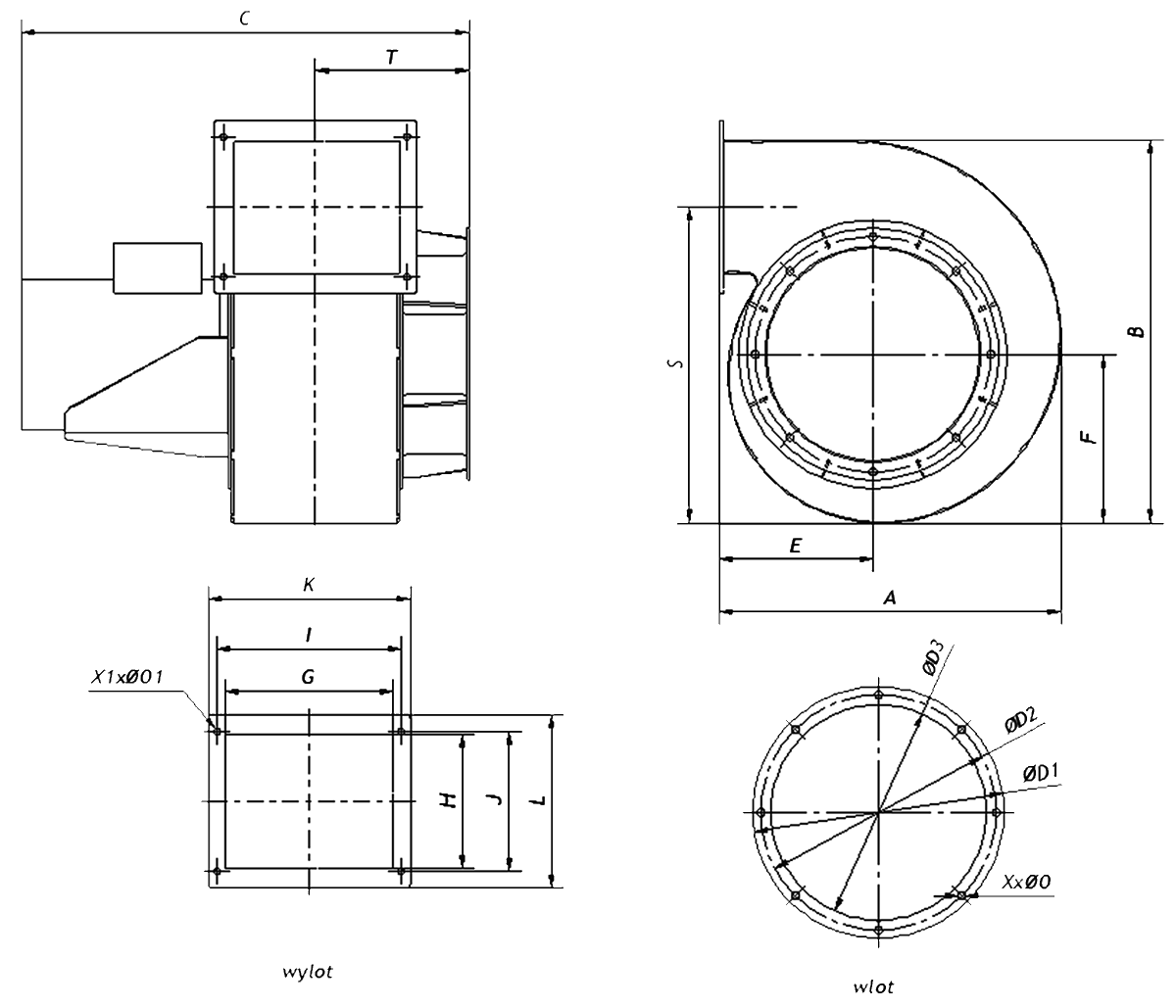 | Typ | J | K | L | F | ØO | X | ØO1 | X1 | S | T |