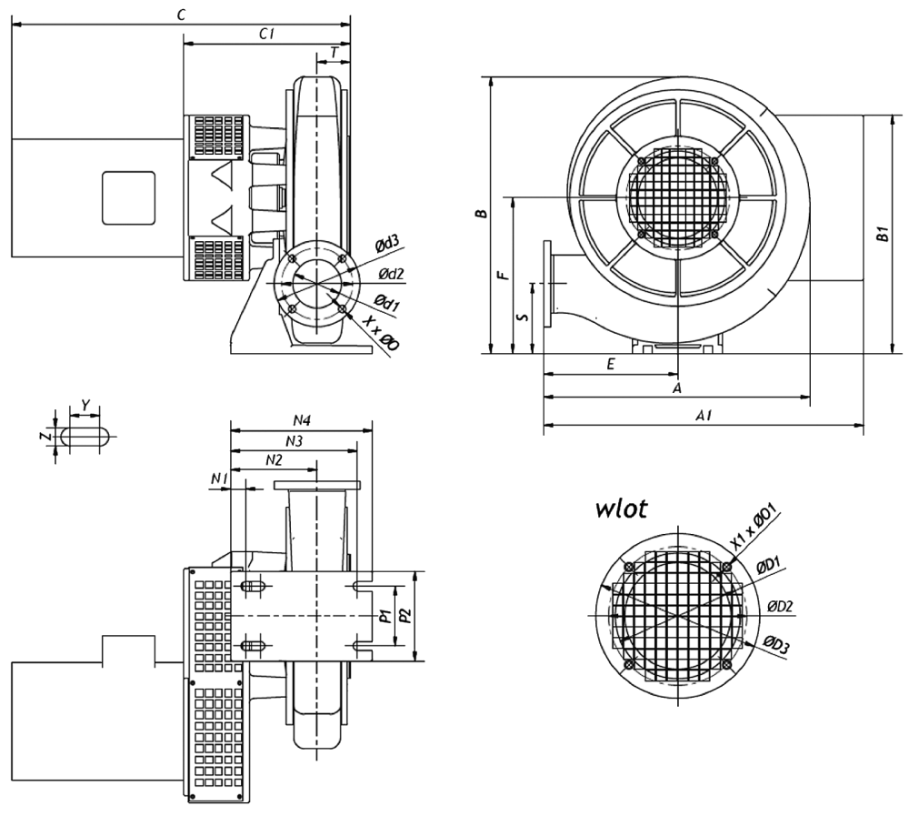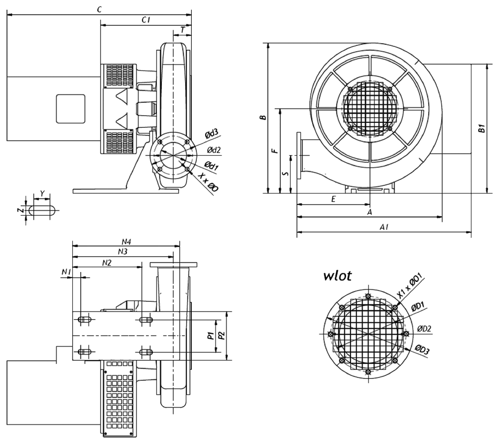 | Typ | T | X | ØO | X1 | ØO1 | Y | Z |
