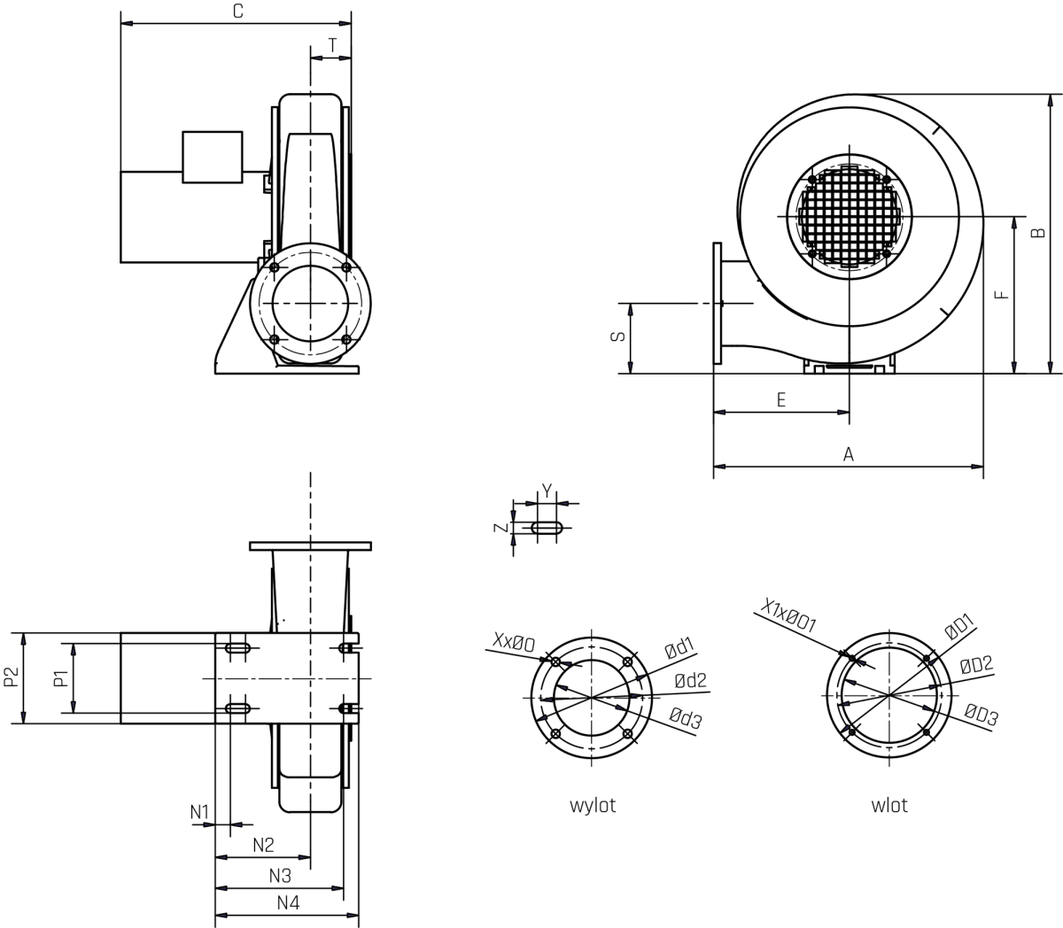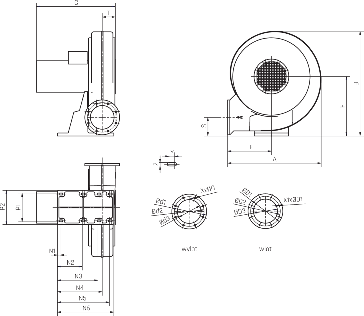 Typ ØO1 P1 P2 S T Z X X1 Y