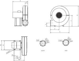 • wirnik odlewany z aluminium z łopatami pochylonymi do przodu, wyważany dynamicznie wg ISO 1940-1