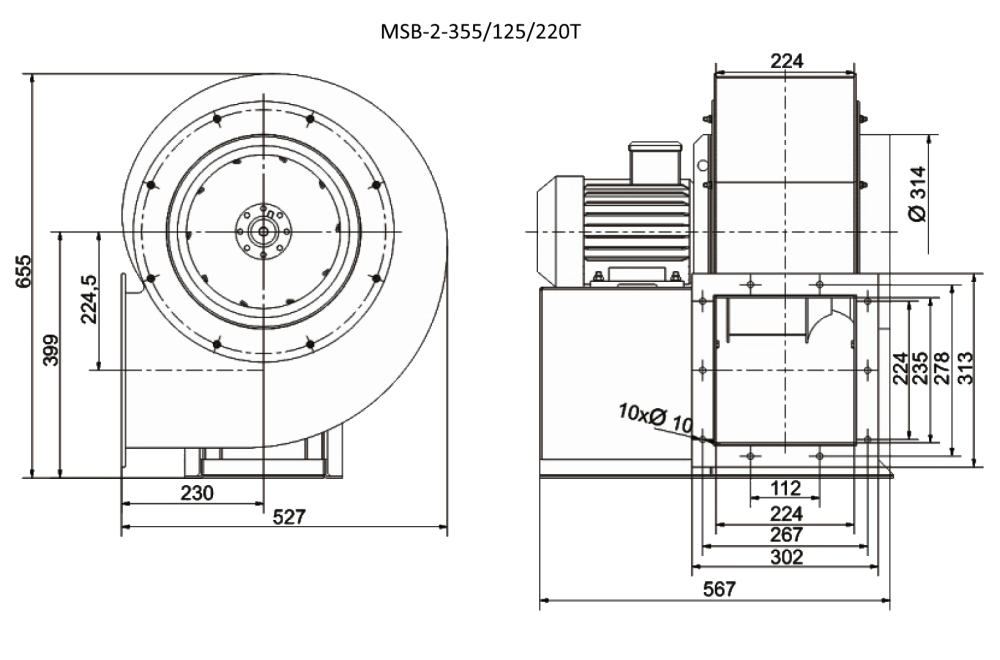 Wentylatory standardowo wykonywane są w figurze LG 270 (wentylatory MSB-2-560/180-3000 i MSB-2-560/180-3700 standardowo dostępne w figurze RD270).