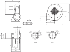 • wirnik odlewany z aluminium z łopatami pochylonymi prostymi, wyważany dynamicznie wg ISO 1940-1
