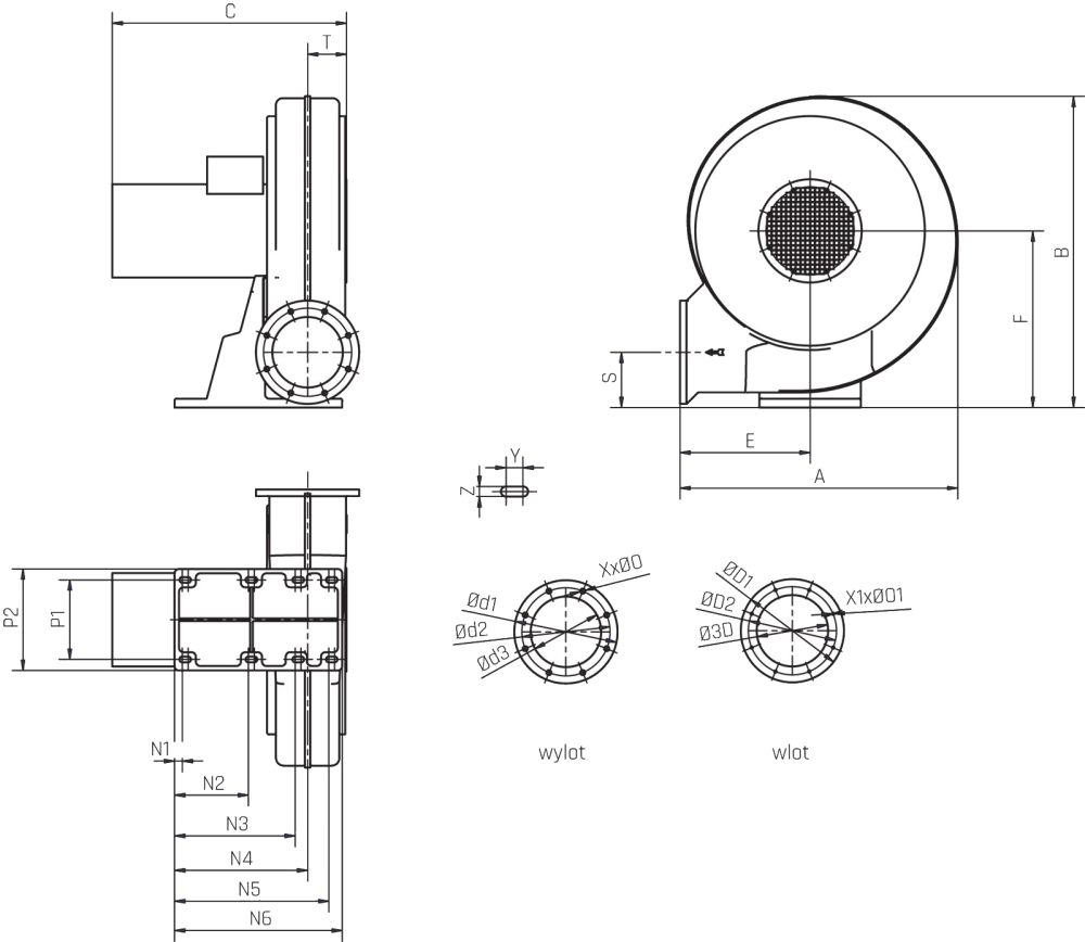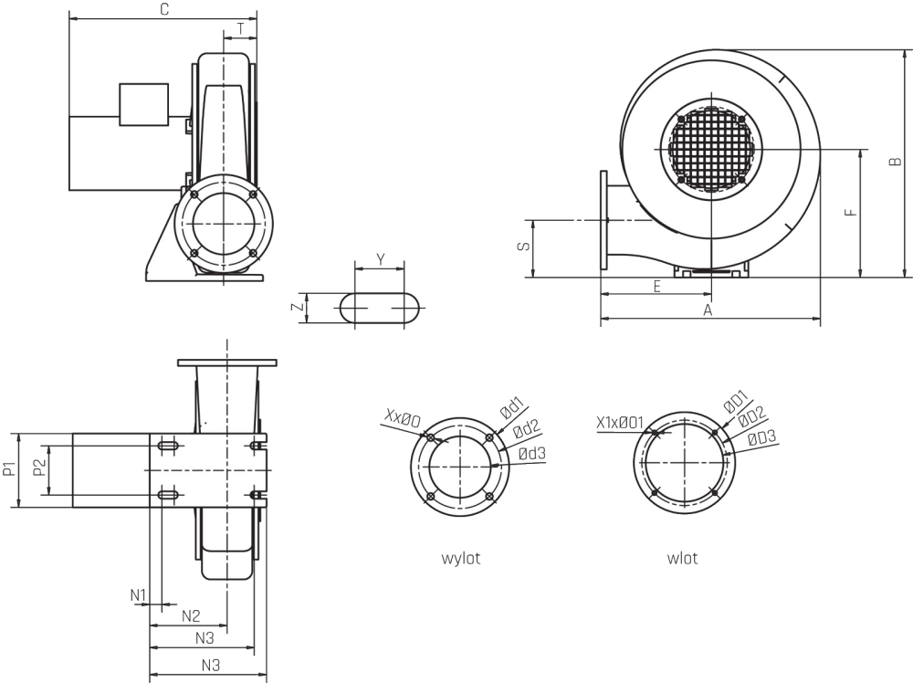 Typ ØO1 P1 P2 S T Z X X1 Y