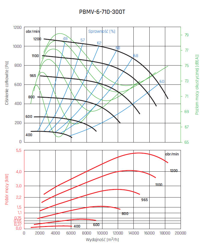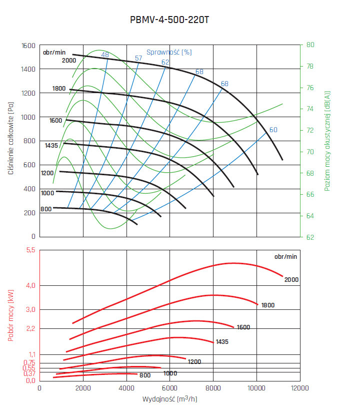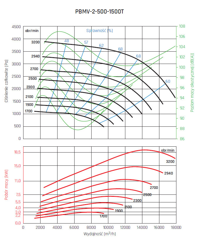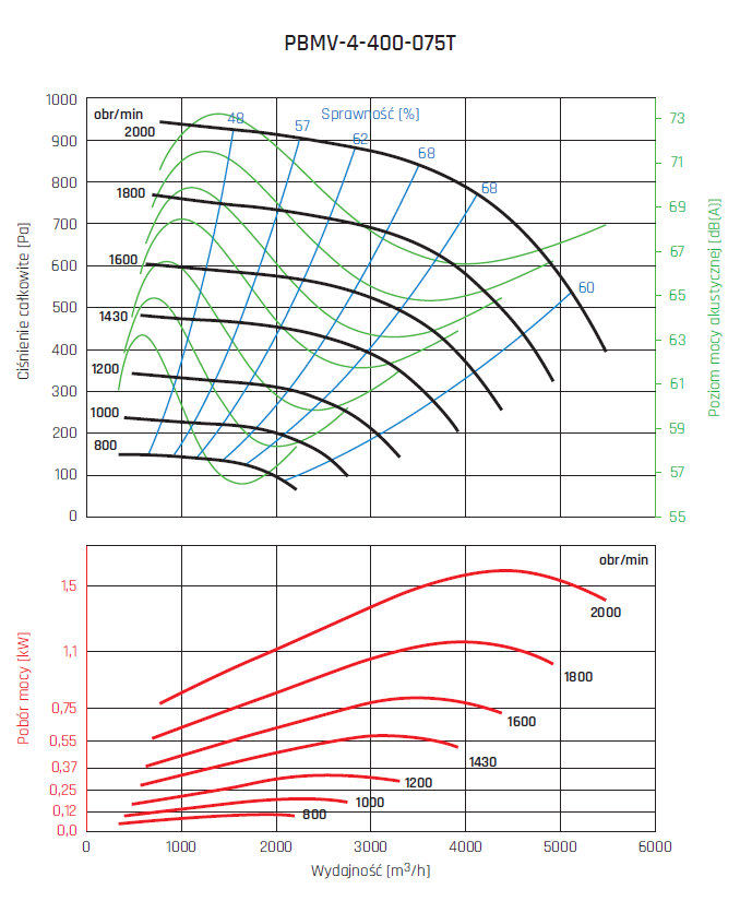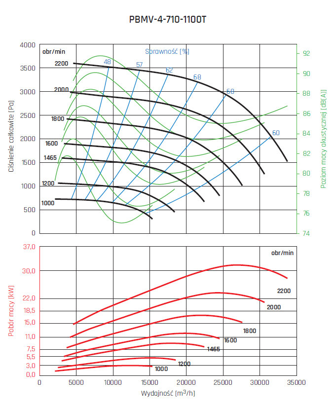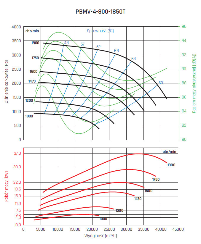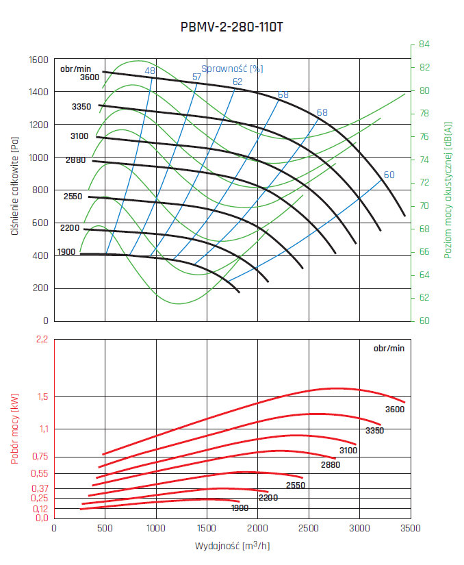 • wirnik aluminiowy z łopatami pochylonymi do tyłu, wyważany dynamicznie wg ISO 21940-1