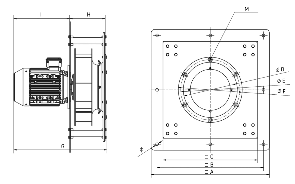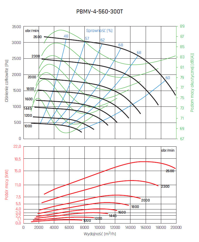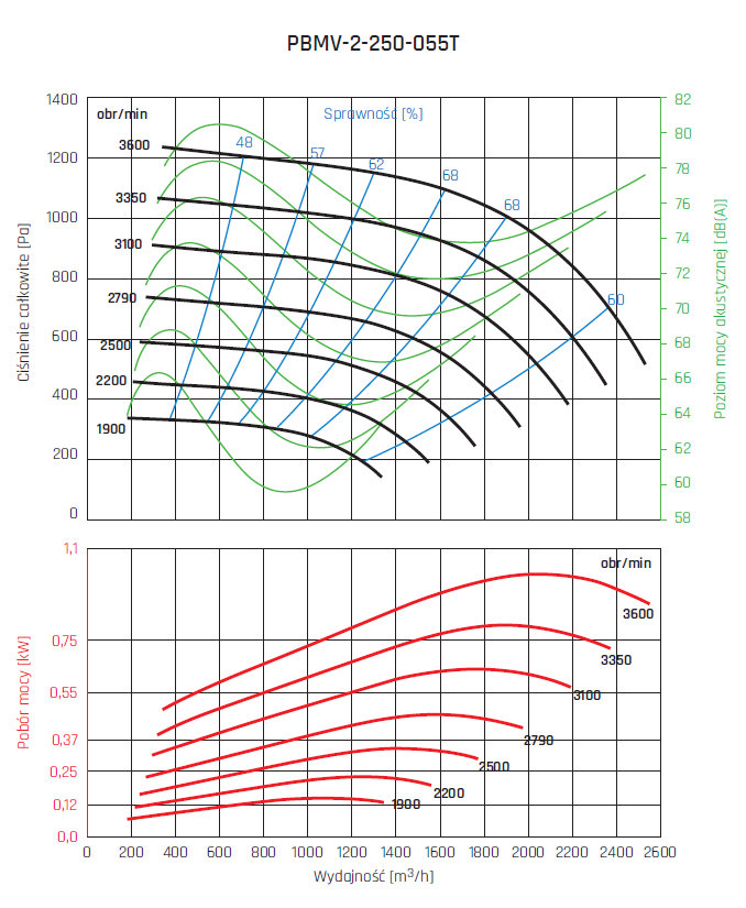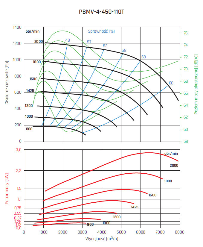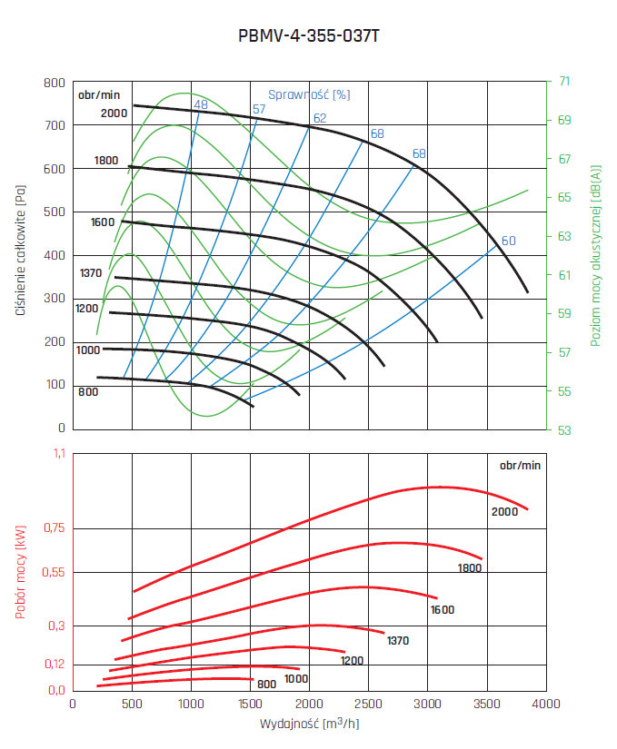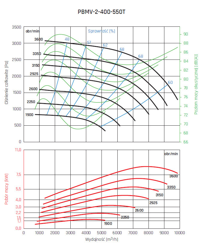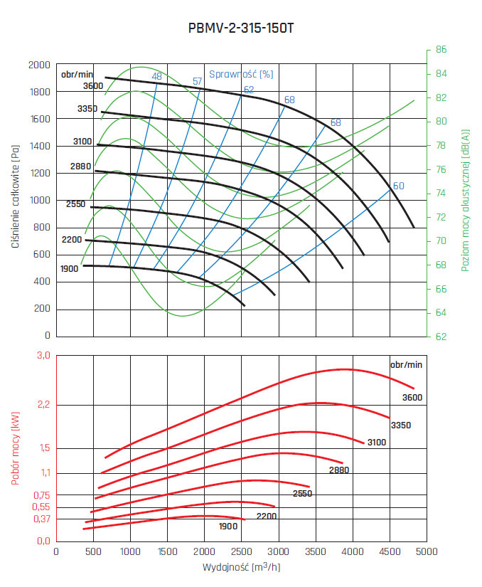 • wirnik aluminiowy z łopatami pochylonymi do tyłu, wyważany dynamicznie wg ISO 21940-1
