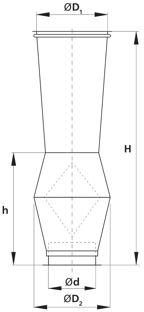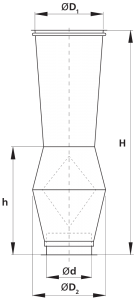 Dachowa wyrzutnia typ G stosowana jest przy pionowym wyrzucie powietrza z instalacji wentylacyjnej. Ze względu na swoja wysokość całkowitą zalecany jest standardowy sposób łączenia z podstawą za pomocą kołnierzy stalowych, oraz stosowanie bocznych odciągów linkowych. Wewnętrzna rąbowa część wyrzutni łatwo przepuszcza wyrzucany do góry strumień powietrza. Z drugiej strony opady atmosferyczne ściekają z boków tego rąbu na boczne ścianki wyrzutni a w dalszej części spadają na powierzchnie dachu – w ten sposób eliminowane jest niebezpieczeństwo dostania się opadów do instalacji wentylacyjnej. Na zamówienie możliwe jest wykonanie wyrzutni z połączeniem mufowym lub nyplowym oraz ze stali kwasoodpornej lub aluminiowej. Wyrzutnia powinna zostać usztywniona bocznymi odciągami.