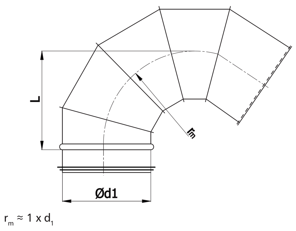 Wykonane segmentowo – okrągłe kolano wyrzutowe do wywiewnych instalacji wentylacji mechanicznej, rekuperacyjnej lub grawitacyjnej. Zastosowany kąt 135 stopni zabezpiecza pionowo montowane kolano wentylacyjne przed opadami atmosferycznymi. Zakończenie siatką o oczku 12,7×12,7 mm zabezpiecza przed dostaniem się liści czy ptaków do instalacji kanałowej – dzięki temu może kolano to pełnić role zarówno wyrzutni jak i czerpni powietrza. Połączenie nyplowe umożliwia bezpośrednie podłączenie go do systemu rur spiro lub B1. Na zamówienie może być wyprodukowane w systemie kołnierzowym lub o wymiarze mufowym do połączenia z kształtkami wentylacyjnymi.