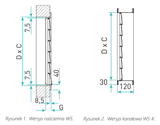 Prostokątne wyrzutnie WS z automatycznie zamykanymi lamelami stanowią zabezpieczenie przed zwrotnym wnikaniem powietrza przy zaniku przepływu wyrzutowego. Wykonanie kanałowe WS-K pełni rolę klapy zwrotnej zabezpieczającej przed zwrotnym przepływem powietrza.
