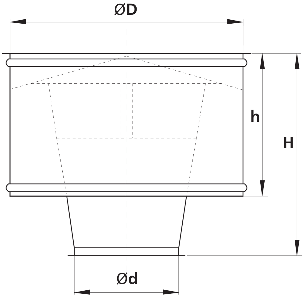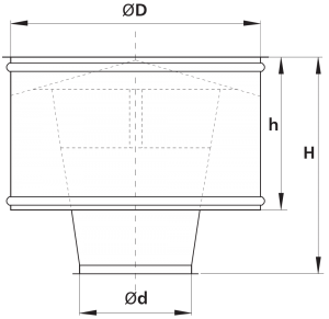 Wywietrzak cylindryczny typ B wykonywany jest standardowo z blachy ocynkowanej. Dolna część łącząca z podstawą wykonywana jest z kołnierzem stalowym.