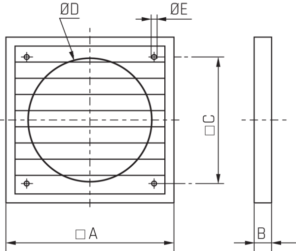 Żaluzja wywiewna z tworzywa sztucznego w wykonaniu przeciwwybuchowym. Przeznaczona do stosowania w strefie 1 i 2. Maksymalna prędkość przepływu medium nie powinna przekroczyć 12 m/s.